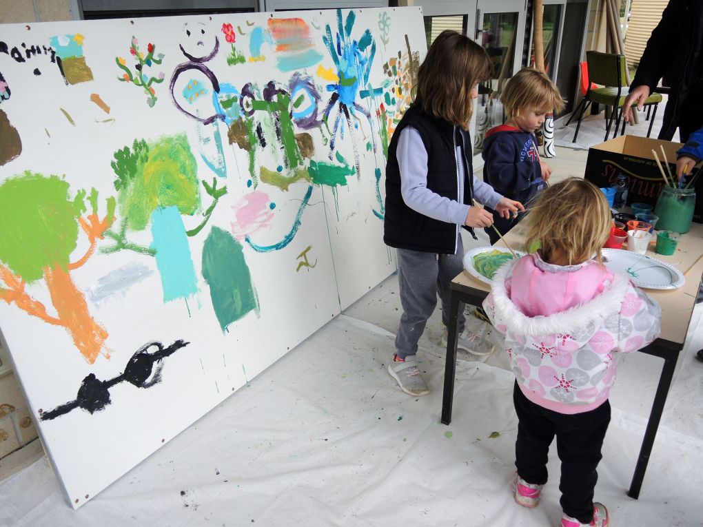 The community mural for local children to paint featured things which were fun.