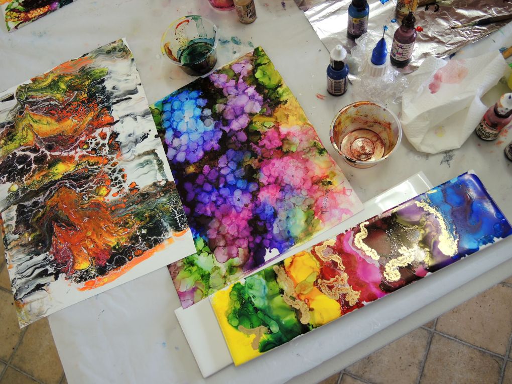 Detail of Ros Bosnar’s alcoholic ink paintings.
