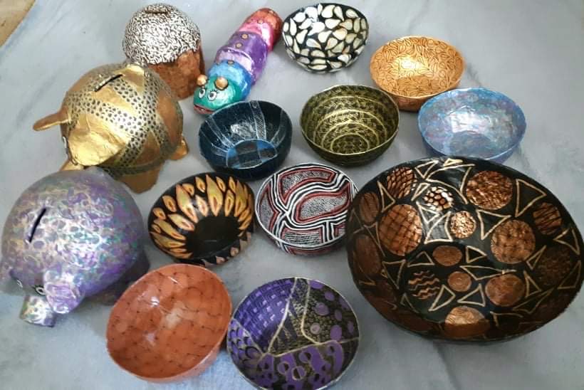 Caroline Everett is a local artist who works with many mediums. For the Christmas market, Caroline has a range of papier mache bowls, money boxes, and cups. To see more of Caroline’s work, visit her Facebook Artist Page.
