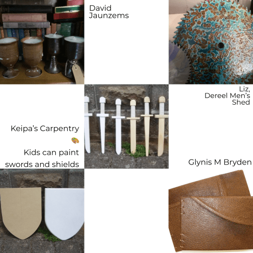 Brendan makes mediaeval toys and games, including blank swords and shields which children can paint at the market. He also makes spinning equipment.